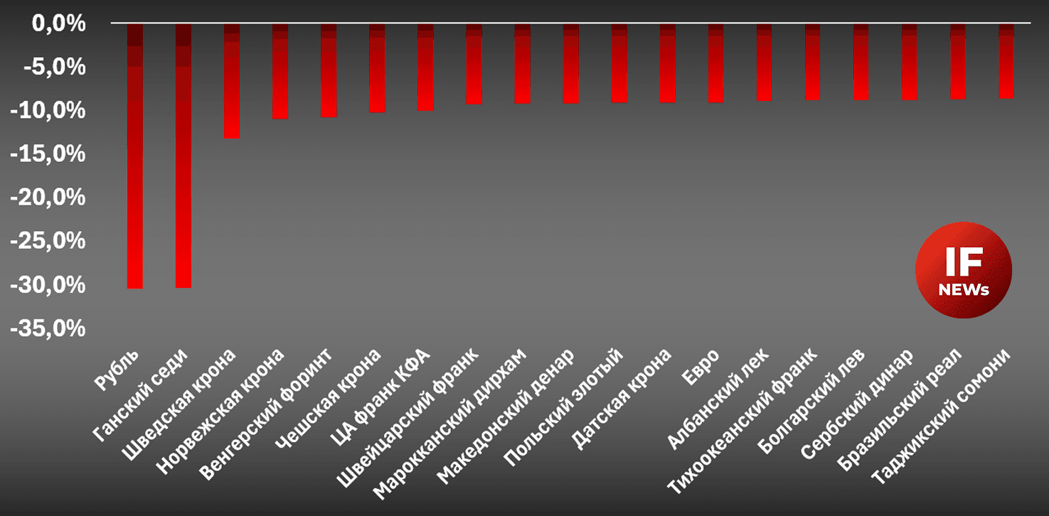 Ослабление доллара по отношению к мировым валютам с начала 2025 года