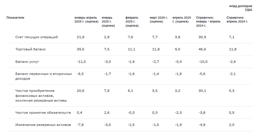 Это уже начинает отражаться в статистике: за первые четыре месяца 2025 года чистый экспорт товаров и услуг сократился до $28,5 млрд против $36,6 млрд годом ранее. Импорт при этом растёт — в мае он достиг $33,1 млрд, что почти на 10% выше февральских уровней. Разрыв между экспортом и импортом сжимается, создавая давление на курс.