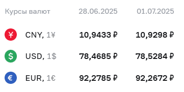 По итогам первого полугодия 2025 года рубль продемонстрировал неожиданную стойкость. Курс доллара на межбанке в конце июня составил 78,5 рубля, а официальные котировки ЦБ колебались в районе 78,2–78,6 рублей. Для рубля — это уровни максимумов с 2023 года. Валюта укреплялась, несмотря на негативные макроэкономические сигналы, в том числе замедление экономики, падение экспорта и рост просроченной задолженности предприятий.